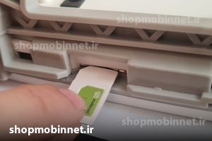 در اولین مرحله لازم است تا سیم کارت که در ابعاد بزرگ خودش است با توجه شکلی که در پائین بدنه نیز درج شده است بصورتی که گوشه آن به سمت چپ مودم است وارد مودم کنیم و بعد از داخل شدن سیم تا جایی که با فشار به ضامن آن برسیم این کار را ادامه دهیم .