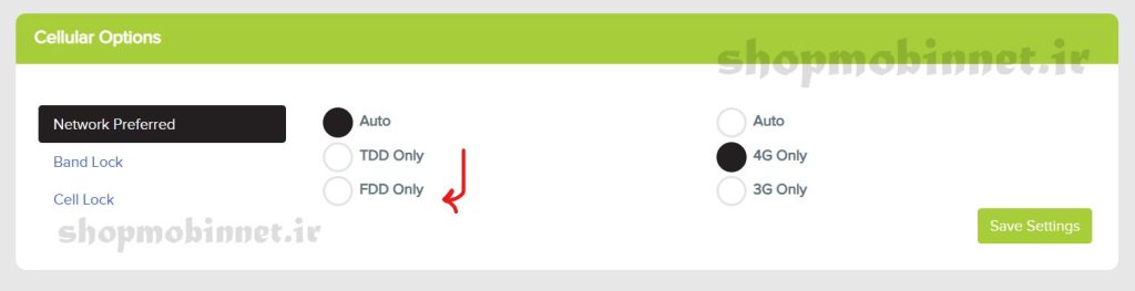 ۶. تنظیم مودم و تغییر حالت به TDD به FDD یا AUTO