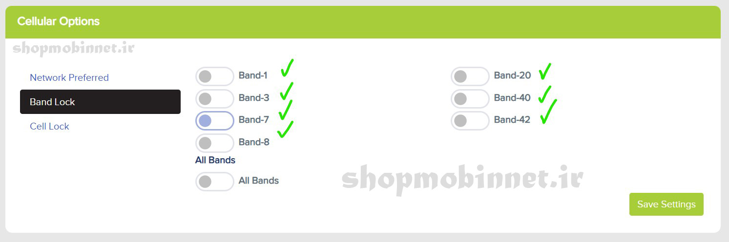 با استفاده از Band Lock، شما میتوانید مودم یا گوشی را مجبور کنید فقط از یک باند خاص استفاده کند — که گاهی باعث بهبود سرعت یا پایداری اتصال میشود.