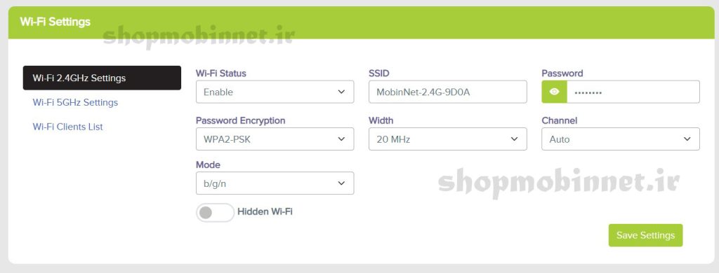 ۸. تغییر نام وایفای (SSID) و رمز عبور برای هر دو باند ۲.۴GHz و ۵GHz مودم