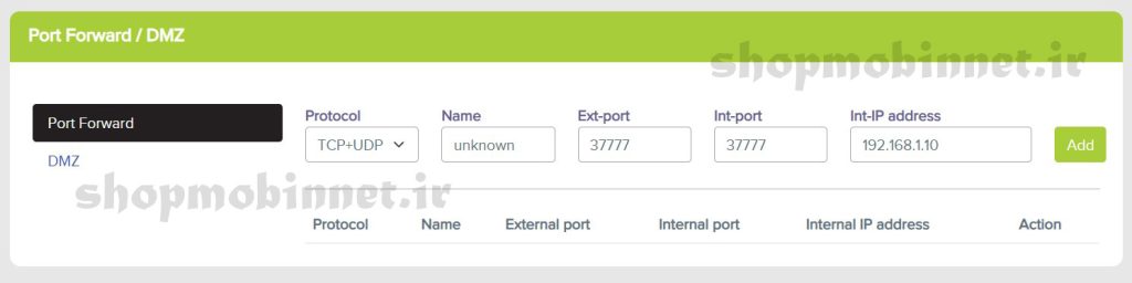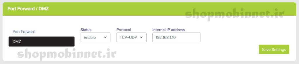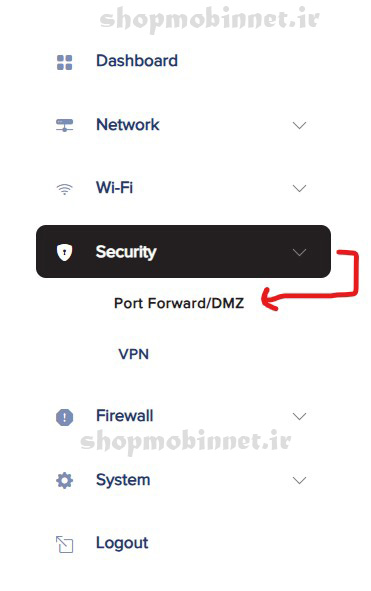 - وارد بخش security و زیرشاخه Port Forwarding یا DMZ شوید