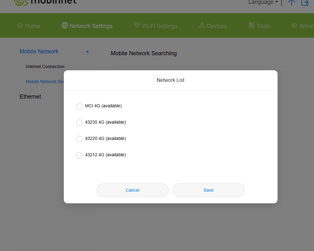 انتخاب دستی شبکه در مودم یعنی کاربر بهجای اتصال خودکار، خودش شبکهی اپراتور (مثل ایرانسل، همراه اول یا رایتل) را انتخاب میکند.