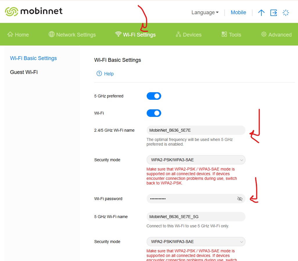 برای افزایش امنیت و مدیریت بهتر شبکه وایفای، پیشنهاد میشود حتماً نام شبکه (SSID) و رمز عبور پیشفرض مودم را تغییر دهید. در مودمهایی که از دو باند فرکانسی 2.4GHz و 5GHz پشتیبانی میکنند، باید هر دو قسمت تنظیمات وایفای را جداگانه ویرایش کنید. یعنی هم بخش بالا (2.4G) و هم پایین (5G) باید نام و رمز مخصوص به خود داشته باشند تا دستگاههای مختلف بتوانند به درستی به شبکه متصل شوند. توصیه میشود از رمز عبوری قوی شامل حروف بزرگ و کوچک، عدد و علامت استفاده کنید تا امنیت وایفای در برابر نفوذ حفظ شود. همچنین، پس از تغییر رمز، تمام دستگاهها باید مجدداً با رمز جدید به مودم متصل شوند.